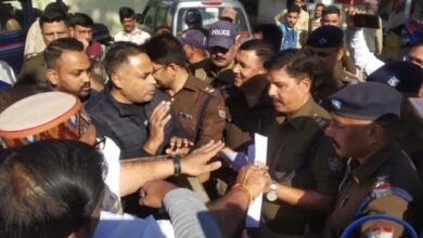 नगर पालिका के टाउन हॉल में आयोजित कैबिनेट मंत्री प्रेमचंद अग्रवाल के जन सुनवाई कार्यक्रम में काले झंडे लेकर जा…