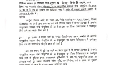 उत्तराखण्ड शासन । देहरादून 16 अक्टूबर, 2025 विषय- मुख्यमंत्री घोषणा सं0-550/2025 सामुदायिक स्वास्थय केन्द्र, चौखुटिया की क्षमता 30 बैड से…
