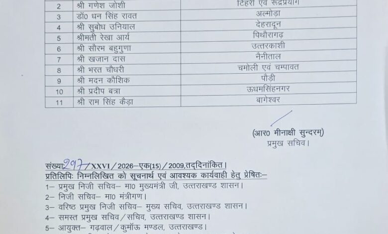 उत्तराखंड में प्रशासनिक फेरबदल, सभी जिलों को मिले प्रभारी मंत्री