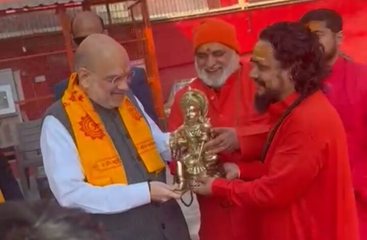 निरंजनी अखाड़े पहुंचे अमित शाह, हनुमान जी के दरबार में टेका माथा