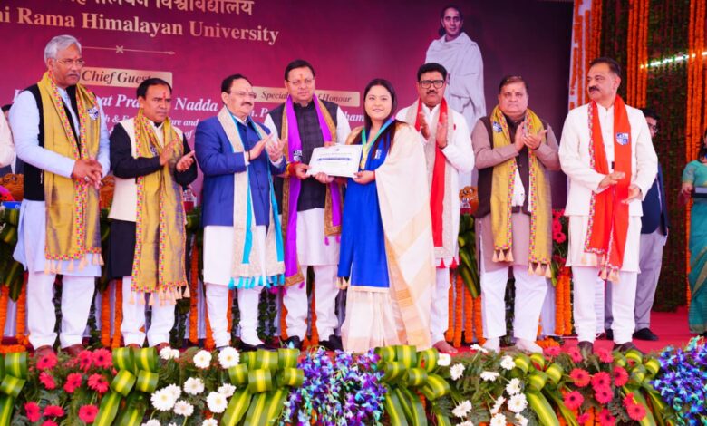केंद्रीय स्वास्थ्य एवं परिवार कल्याण मंत्री तथा रसायन एवं उर्वरक मंत्री जेपी नड्डा और उत्तराखंड के मुख्यमंत्री पुष्कर सिंह धामी ने जॉलीग्रांट स्थित स्वामी राम हिमालयन विश्वविद्यालय के आठवें दीक्षांत समारोह में क्रमशः मुख्य अतिथि और विशिष्ट अतिथि के रूप में प्रतिभाग किया।