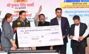 मुख्यमंत्री ने देहरादून जनपद को विजेता ट्रॉफी, 5 लाख रुपये का चेक प्रदान किया
