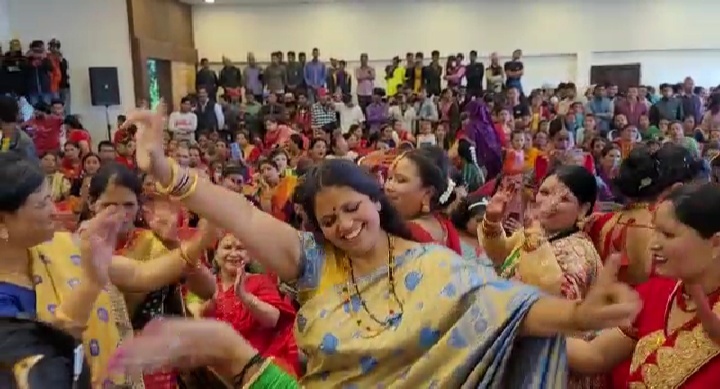 रिपोर्टर ,,,,,सतीश कुमार मसूरी : श्री राधा कृष्ण मंदिर सभागार में मसूरी ट्रेडर्स एसोसिएशन द्वारा हरितालिका तीज पर्व पर विभिन्न सांस्कृतिक कार्यक्रम और प्रतियोगिताएं आयोजित की गई। इस मौके पर पारंपरिक वेशभूषा में नेपाली समुदाय की महिलाओं के साथ ही स्थानीय महिलाओं ने भी शिरकत की और नेपाली गीतों पर जमकर थिरके ।
